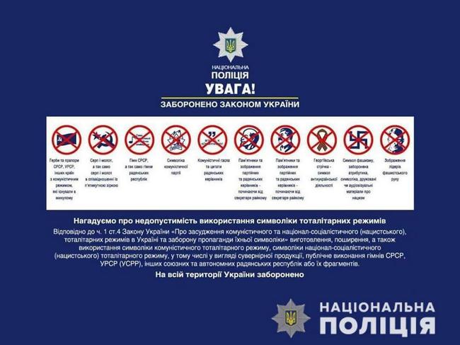 У Дні пам'яті та примирення (8 травня) та 76-ї річниці перемоги над нацизмом у Другій світовій війні (9 травня) зростає вірогідність поширення комуністичної та нацистської символіки. Тому поліція нагадує, що за такі дії можна потрапити за грати.