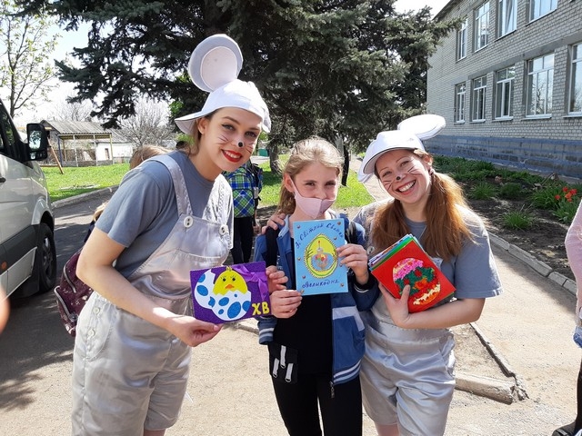 3 000 маленьких українців з прифронтових населених пунктів Мар’їнка, Новомихайлівка, Новолуганське, Світлодарськ, Парасковіївське, Миронівський, Красногорівка побували на святкових інтерактивних виставах чернігівських лялькарів та допомагали «космічним мишенятам» (актори - Ольга Ільо, Роман Маджуга та Ольга Маджуга) збирати великодній кошик, танцювали, брали участь у конкурсах, щиро виявляли свої емоції. У складі творчої команди театру, яка побувала на Донбасі також були - режисер програми «Великдень з космічними мишами» Антон Шеремок, звукооператор Сергій Міщенюк та завідувачка літературної частини театру Мирослава Губар.