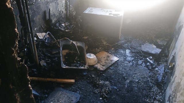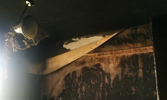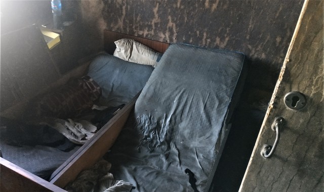Вчера соседка, 57-летняя Екатерина Богдановна Лысач, живущая рядом в квартире №98 около 2-х часов ночи услышала, что между ними тремя произошла пьяная драка. Сейчас она на работе. Хозяин, видно обращаясь к одному из своих собутыльников, закричал: «Что ты наделал?!» Она с ужасом выглянула в коридор, и увидела завесу дыма. Вызвала сразу МЧС. А мой внук где-то в 2 часа ночи проснулся от запаха гари. Мы пошли на кухню и из окна увидели, что у Куликовского с балкона летят горелые щепки, и тоже набрали «101», но нам ответили, что вызов уже принят и пожарные выехали. Тогда я постучала в дверь Алле Николаевне, она вышла, и мы начали подставлять кастрюли, тазики, ведра, так как сверху лилась вода черного цвета.