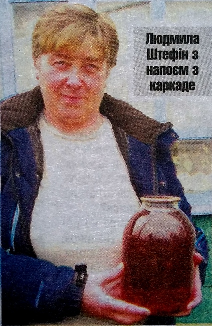 — В інші кладку гілочки смородини, малини як заправку. Три гілочки на трилітрову банку. Кислота, цукор додаються. Всюди п’ять столових ложок цукру на банку, кислоти — на кінчик чайної ложки (крім каркаде). Всіх видів напою позакривала по 10 трилітрових банок. Соку березового чоловік Олександр навозив.