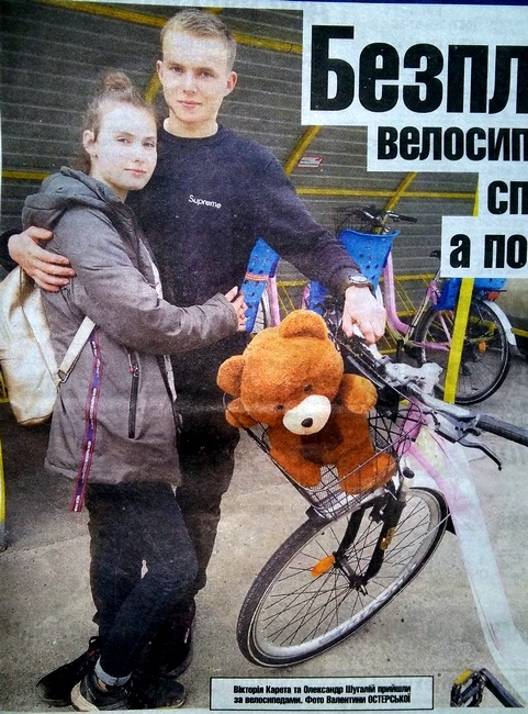 Я теж, доки у Сосниці ця послуга не з’явилася, не чула, щоб подібне було в області. Не знаю, чи де є в Україні. Якось приїздив мужик у Сосницю, картоплю скуповувати, теж дивувався. Казав, що бачив прокат велосипедів, але платний. На рулі коробочка, в неї кидаєш гроші. І як тільки оплачений час і кілометраж вийшли, автоматично блокується. І ще люди кажуть, що ми погано живемо. Коли таке було, щоб велосипеди даром давали?