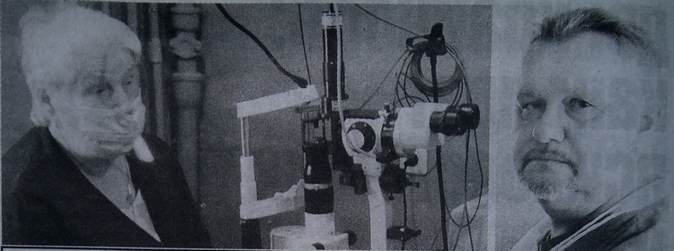 — Відкривайте очі. Прямо голову, пряміше, вниз, угору, — обстежує пацієнтку Ольгу Короленко, пенсіонерку з Ніжина, офтальмолог Ігор Лютницький. Йому допомагає лікар-інтерн Тетяна Коляко.