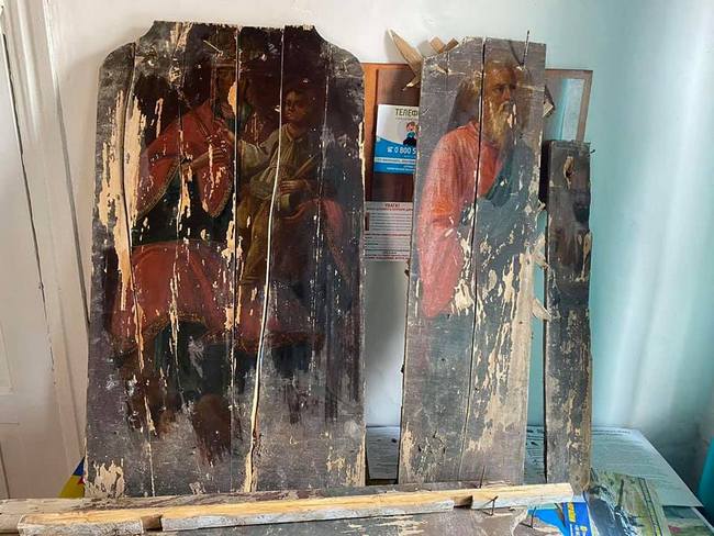 — Они были во втором простенке, — говорит староста Новых Млынов Надежда Роева. — Когда начали рассматривать его, поняли, что дощечки даже не сбиты между собой, а склеены, поэтому разбирали тот простенок очень аккуратно, чтобы ничего не повредить. В результате получили пять икон. Часть, скорее всего, из иконостаса, потому что очень уж они большие: Божья Матерь с младенцем, Святой Петр и еще один лик святого — то ли Павла, то ли Иоанна. Еще две иконы сохранились плохо, потому что были написаны на холсте. Пока они хранятся у нас, в старостате, в дальнейшем планируем передать их в нашу Троицкую церквовь. Все иконы, которые были найдены ранее, уже там — мы решили оставить их в общине. Кстати, одну из них нам пообещали осветлить — в церкви как раз проводилась реставрация и мастер осмотрел их. Отдавать же иконы (пусть и частично) в чужие музеи люди не захотели. Кто знает, а может, у нас появится свой. Новые Млыны имеют богатую историю, поэтому поместить туда точно было бы что.