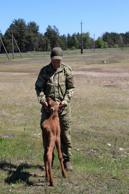 Вигулюючи рано-вранці свою вівчарку на території садівничого кооперативу «Полісся», військовий пенсіонер Володимир Н. на одній з вуличок натрапив на вкрай знесилене лосеня, яке тулилося до огорожі і не могло вже навіть звести свою голівку…