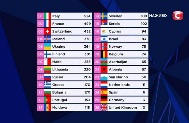 Цікаво, що Великобританія цього року отримала 0 балів від журі і 0 балів від телеглядачів.