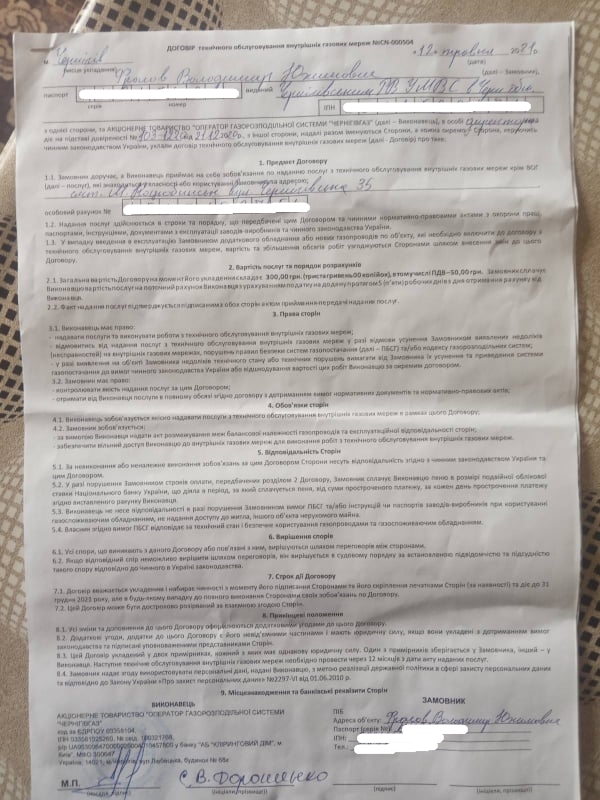 - Особенно настойчивы они были в подписании этих договоров были с пожилыми людьми, - добавляет Наталия. Ни к моей семье, ни к моим друзьям моего возраста - никто с этими договорами не приходил. Я проверяла адрес, который стоит в договоре - Любечская, 68х. - Домов с приставкой «х» в Чернигове нет, а 68-й номер - это здание «Черниговгаза».