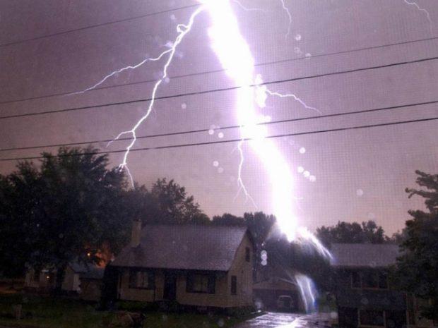 А в Молодежном Бобровицкой общины в 19.20 от удара молнии загорелась столовая.