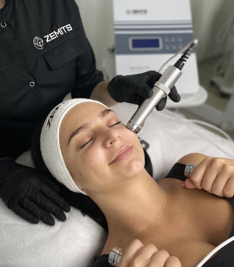 С помощью специального устройства врач обрабатывает глубокие слои кожи ультразвуком.