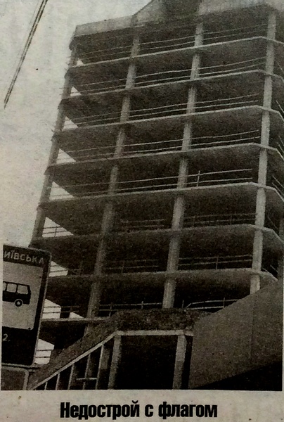 На верхушке самого высокого недостроя в центре Чернигова, по улице Киевской, был флаг Украины. Для многих он как символ, что власть в городе украинская. Но летом флаг сняли. Здание связывают с мэром Чернигова Владиславом Атрошенко.