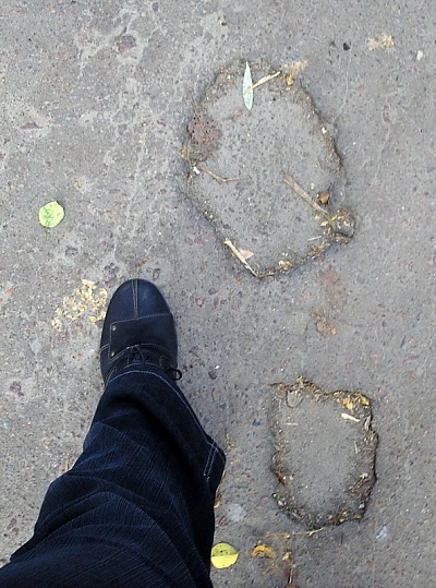 О размерах: наш постоянный читатель на асфальте обнаружил необычный след. Может в Чернигове появился снежный человек?