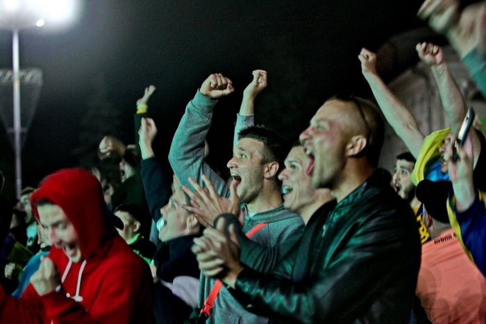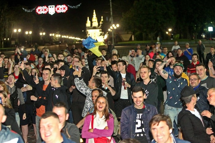 Сегодня на площади можно посмотреть матч «Украина - Северная Македония», он начался в 16.00. Первый матч с участием Украины в первом туре Евро-2020 прошел 13 июня, Украина играла против сборной Нидерландов и голландцы выиграли поединок в Амстердаме со счетом 3:2.