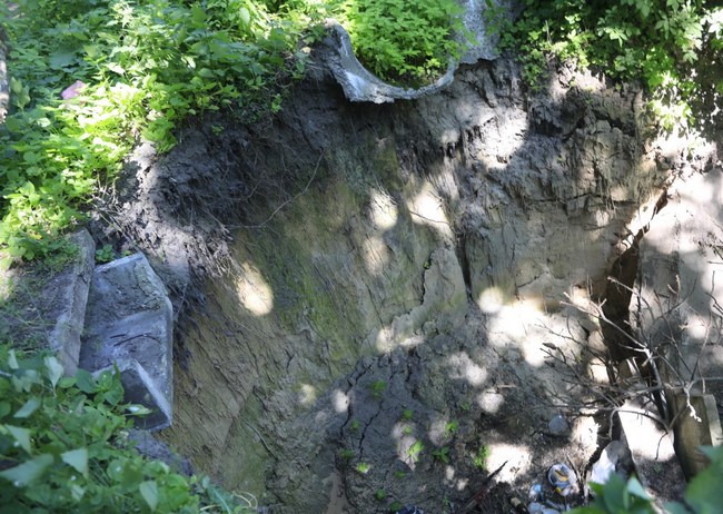 Від жолоба для стічних вод бере початок провалля на крутому схилі, що тягнеться до річки Снов