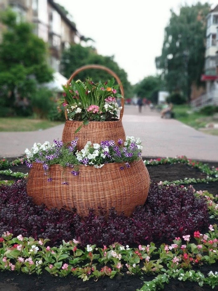 На вул.Серьожнікова з'явилась двохярусна клумба-корзинка