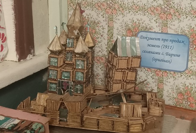 В експозиції шкільного музею представлені різні епохи: давні часи, промисли Бирина, Друга світова війна, колгоспне життя, Голодомор, незалежність. З найдавніших експонатів – зуб мамонта, кремнієвий наконечник, з Середньовіччя – знаряддя промислу. Друга світова представлена зброєю та амуніцією, а період Української національної революції та становлення більшовизму – грошима. Є тут тодішні газети та листи односельців і багато-багато іншого.