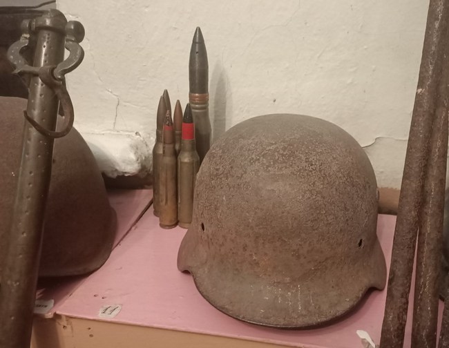 Чи не найбільше представлена у краєзнавчому музеї Друга світова війна. Ось стоїть масивний артилерійський снаряд, який до того, як потрапити знешкодженим у школу, стояв на бойовому заряді в діда. На ньому той клепав косу, точив сапи і взагалі використовував як долото. Коли ж викликали чернігівських мінерів, то виявилося, що заряд бойовий. Дуже добре збережена німецька каска – рідкість для пошуковців. А з якою повагою спілкувались биринські фронтовики зі своїми рідними!