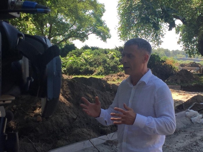 На Валу, де зараз активно ведуться роботи з реконструкції історичної території, сьогодні зранку поблизу будівельників збираються журналісти. Кілька камер, і чимало зацікавлених співробітників редакцій – усіх запросили на початок лікування вишні-антипки.