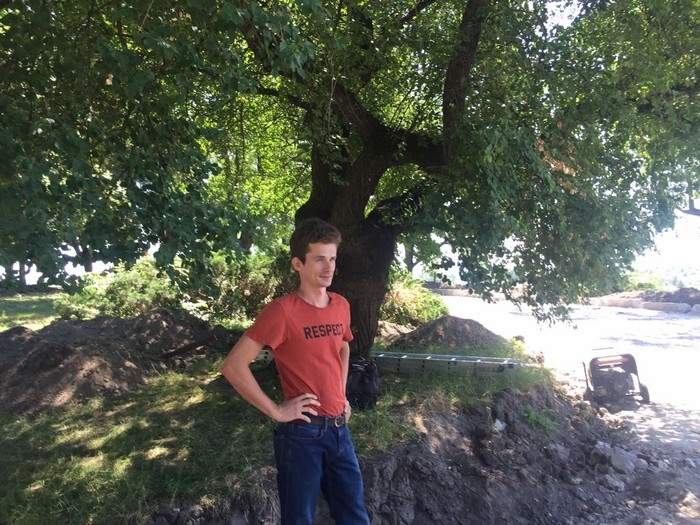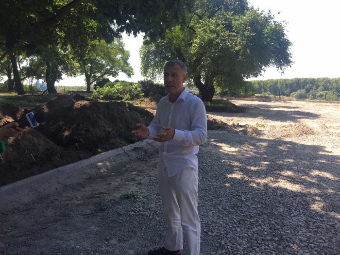 Після пів години очікування від названого часу з’являється Артем Стах, директор комунального підприємства «Зеленбуд». Він телефонує фахівцю-арбористу Володимиру Вєтроградському (арборист – фахівець з догляду за деревами), який затримується, і починає спілкуватися з пресою.