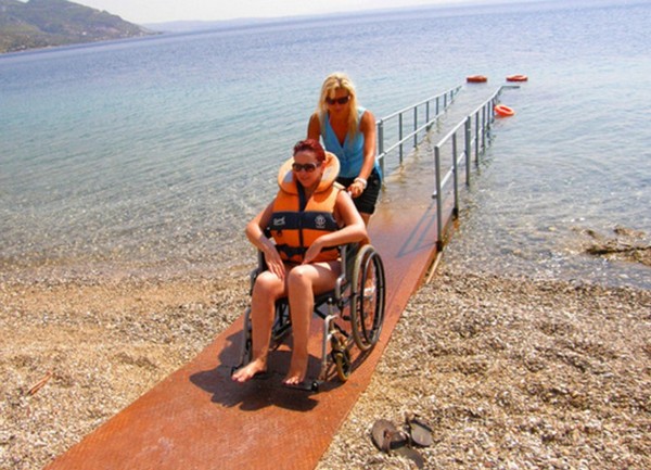 На фото пляж грецького готелю Sirens, який вважається одним з кращих готелей для відпочинку людей з обмеженими можливостями