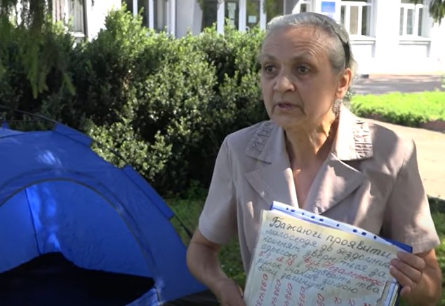 У центрі Борзни, біля міської ради, Людмила Дворниченко поставила намет. Сама з оголошенням сіла біля входу. Жінка каже: це крок відчаю.
