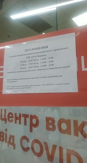 Алексей рассказал, что ждать своей очереди пришлось 2 часа. Когда под вечер около 19.20 в осталось человек 15 нам сказали: мы закрываем пункт и вы на вакцинацию вы не попадаете. Моя жена подошла к врачу и пояснила, что мы приехали издалека, ждали долго, может получится привить нас и оставшихся людей, на что нам ответили, что если мы иногородние, то можно было вообще не приезжать, так как вакцина нам не положила и показала пальцем на стенд, где был приклеен листик А4 с объявлением о том, что здесь вакцинируются только жители города Чернигов и области.