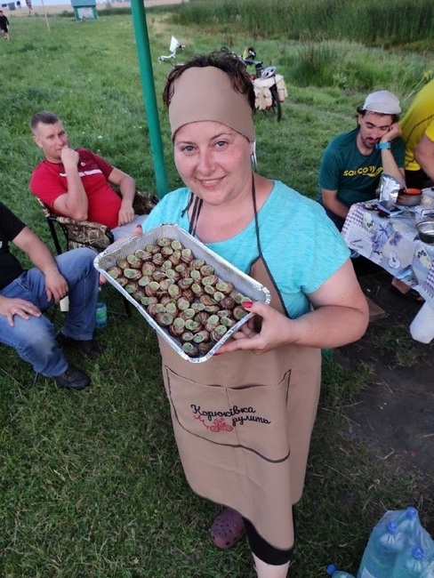 Вспоминает: во время пробега они получили немало вкусных сюрпризов. Скажем, в Ичне им подарили целый ящик сгущёнки производства местного молочно-консервного комбината. А друзья с Прилукщины презентовали улиток. Готовили их под руководством постоянного повара велопробегов Виктории Тихоновской. Некоторые пробовали деликатес впервые.