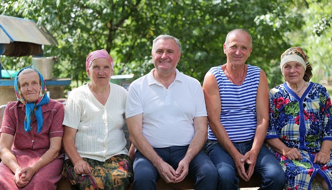 На лаві вдома з земляками