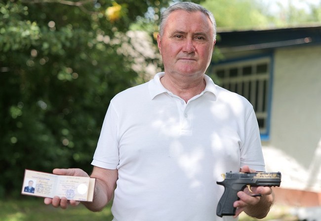 «Ця зброя, пістолет «Форт-1705», від президента України за проведення близько 20-ти успішних операцій з виявлення та знешкодження злочинних груп. Зброю вручав перший заступник міністра внутрішніх справ Володимир Миколайович Євдокімов», – говорить полковник.