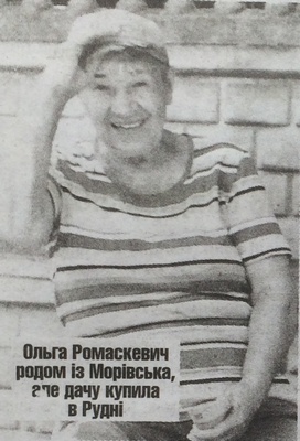 Ми тут з квітня і до жовтня, — говорить Ольга Ромаскевич, — 16 років як купила тут хату. Сама родом з Морівська, та коли я шукала хату по моїх грошах, з нормальною дорогою, у Рудні була. Тут і купила.