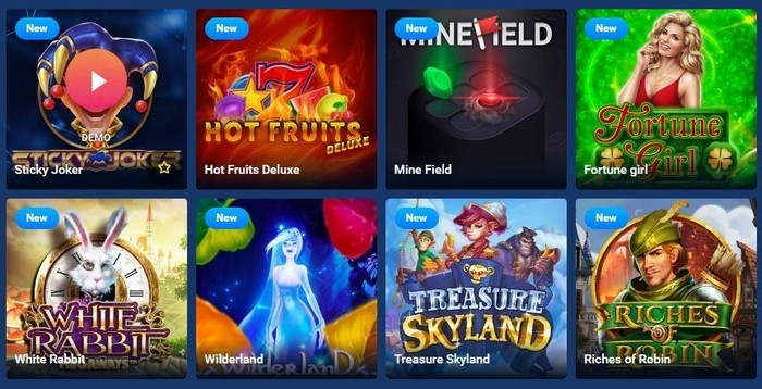 Клуб применяет на портале софт популярных компаний – Evoplay, Play'n'Go и Evolution Games. Подборка включает в себя видеослоты, эмуляторы настольных игр и т.д. Тематики самые различные: дикая природа, приключения, музыкальные группы, известные личности и животные. Геймерам предлагаются аппараты с индексом Return to Player (возврата ставок) 94% и больше, большинство оснащены символами с особыми функциями дополнительными турами фриспинами.