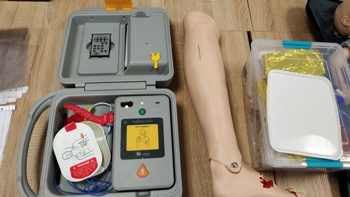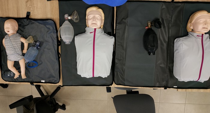 У нашому навчанні ми використовуємо автоматичний зовнішній дефібрилятор та манекени для базової серцево-легеневої реанімації, які за допомогою спеціальної програми в смартфоні QCPR Training допомагають визначати глибину, частоту компресій, тобто контролювати їх якість, а також правильність виконання вентиляцій мішком АМБУ.