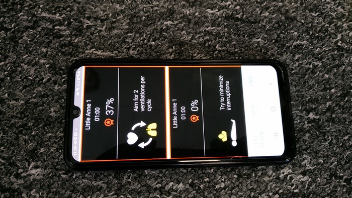 Під час серцево-легеневої реанімації тренери показали як працює, встановлена у медиків в телефонах програма QCPR Training. Вона допомагає визначати глибину та частоту компресій.
