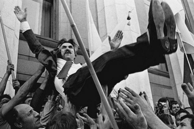 Українці вітають Левка Лук’яненка після прийняття Верховною Радою Акта про незалежність України