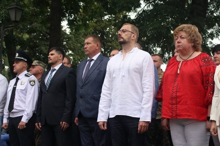 Вітальне слово було надано голові Чернігівської ОДА В'ячеславу Чаусу, який прибув на захід у білій вишиванці. Він сказав, що День прапора - є одним з найголовніших у сучасній державі Україна: