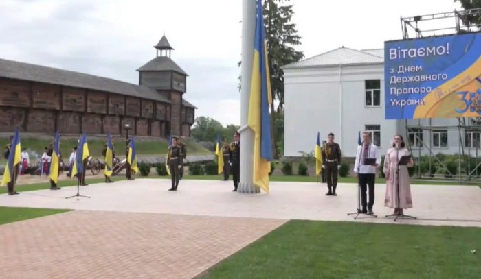 Сьогодні 23 серпня у м.Батурин Чернігівської області пройшла урочиста церемонія підняття найбільшого в області Державного прапора України. Прапор у Батурині ми підіймали синхронно з усією Україною о 9 ранку. Висота флагштока - 30 м, розмір полотнища 4х6 м. Під час підняття лунали Гімн України і салют із козацьких гармат.