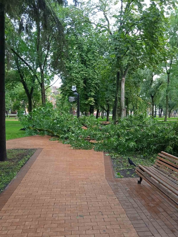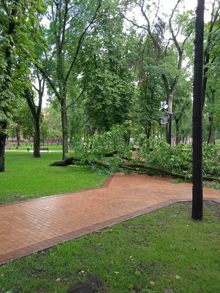 Окрім центрального скверу на Валу, буревій повалив два аварійних дерева на "стежині здоров'я", що веде з Центрального парку культури і відпочинку на пляж Золотий берег, - про це повідомляє на своїй сторінці у Фейсбук КП "Зеленбуд".