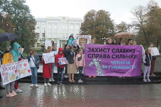 – Цель марша – рассказать людям, которые не знают о проблемах взаимоотношения животных и людей, не знают что сфера развлечений с животными – это проявление жестокости. Часто думают, что это позитивно, но это не так. И конечно, обратить внимание власти к законам, которые предлагаются на защиту животных. В тридцати городах Украины проходят сегодня подобные марши, и мы хотим показать, что Чернигов также гуманный город, – говорит Татьяна Диденко, представитель общественной организации «Крок до тварин».