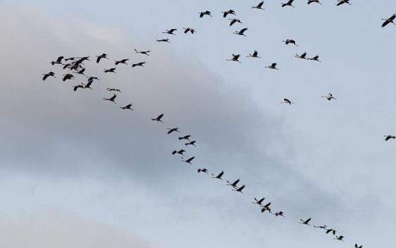 Журавель сірий у нас гніздиться. Відлітають набагато пізніше. А навесні будуть у нас першими, на початку березня.