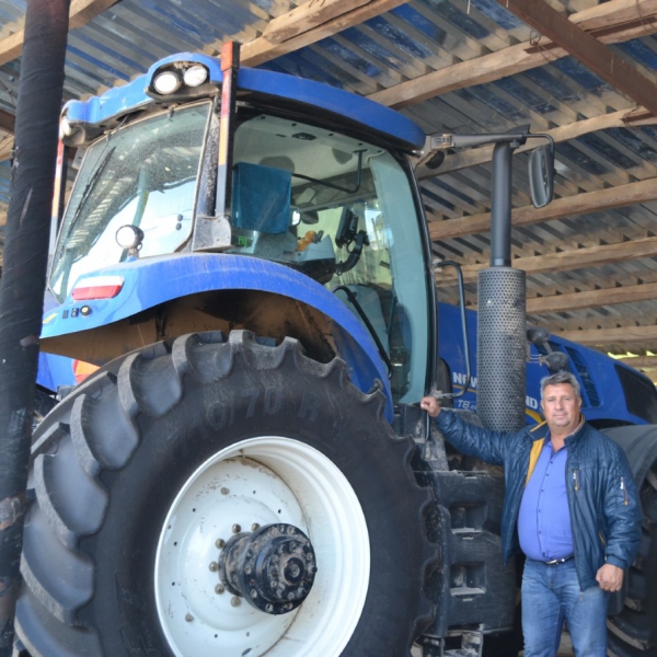 Григорій Михайлович підходить до «міці» його господарства – новенького 340-сильного трактора «Нью Холанд». Техніку придбали навесні за Програмою «5-7-9» під 7 відсотків річних, терміном на 5 років. Цей трактор заміняє чотири одиниці старих тракторів типу «Т-150». До того ж це нова техніка, надійна і на гарантії. На додачу до «Нью Холанда» Григорій Ткаченко закупив три 110-сильних «Джон Діра» та два китайця «Юто». Крім того, в господарство придбали вітчизняні дискові борони, культиватор та два оприскувачі. Купили і нову американську сівалку та нового зернового комбайна «Джон Дір». Наявність такої техніки втілює впевненість у завтрашній день та надає швидкості технологічним процесам роботи на землі.