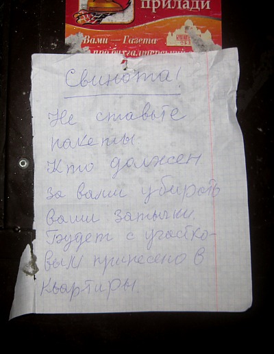 Об объявлениях: на нашем подъезде появилось объявление с обращением к "свиноте". Всегда думала, что в квартирах живут люди...