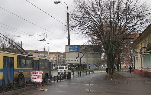 О знаках: недалеко от "Круга" прямо над тротуаром установлен дорожный указатель: