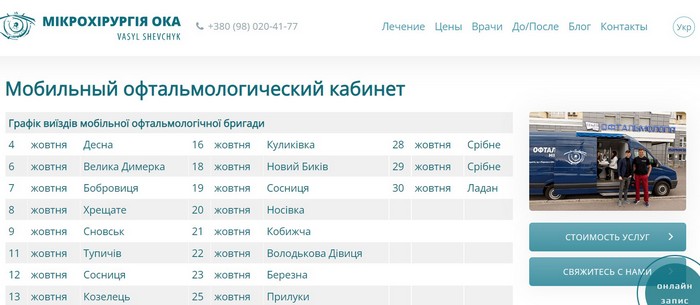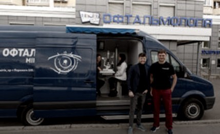 Як видно на фото автівка - брендована логотипом відомої чернігівської приватної клініки Василя Шевчика «Мікрохірургія ока». На сайті лікарні є світлини цієї автівки, вона функціонує, як Мобільний офтальмологічний кабінет. За графіком, який розміщено на сайті мала цього дня заїхати до Нового Бикову, що знаходиться за 139 кілометрів від Чернігова, аби обстежити пацієнтів за попереднім записом. «Мобільний офтальмологічний кабінет оснащений таким же сучасним обладнанням, як і стаціонарні кабінети», - повідомляється на сайті клініки.