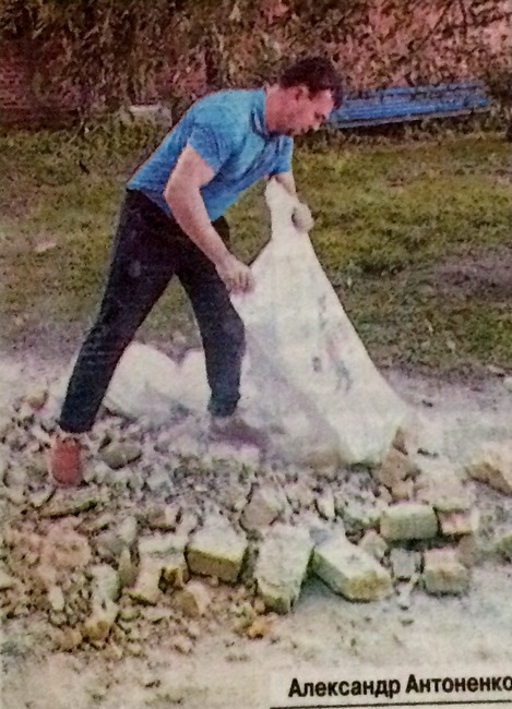 Житель одной из многоэтажек в центре Ладана на Прилукщине — мастер спорта Украины по фри-файту (вид единоборств, позволяющий использовать удобную для спортсмена тактику ведения боя) и чемпион мира по кэмпо-каратэ (японское боевое искусство, система рукопашного боя) Александр Антоненко (35 лет) — по собственной инициативе следит за чистотой не только в своем подъезде, но и во дворе возле дома. Если заметит окурок или другой мусор, веник в руки — и за работу. Мусорное ведро стоит неподалеку —между лавкой и собачьей будкой. Александр следит за его наполнением, выбрасывает содержимое в мусорный контейнер, расположенный в 100 метрах. Поборника чистоты поддерживают соседи.