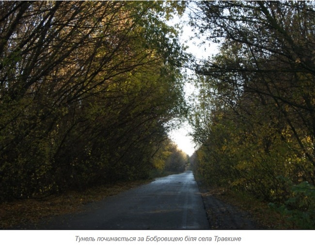 Цим зеленим тунелем користуються аграрники з Травкіного, Вороньків, Веприка та інші. Але такий «метротунель» – не єдиний на шляху Бобровиця-Новий Биків. Він є на в’їзді до Вороньків і біля Веприка. Двом зустрічним зерновозам тут не розминутися.