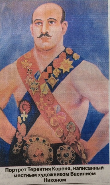 Председателем сельсовета его избрали в начале нулевых. Тогда одним из начинаний нового руководителя стала декоммунизация. В Блистове её провели намного раньше, чем во всей Украине. Так, улица революционера Петра Войкова получила имя земляка Терентия Кореня. Во время руководства Мышкина в сельсовете появился портрет мирового чемпиона —его срисовал со старой афиши местный художник Василий Никон, а в селе — стела с изображением Кореня, также в его честь был проведён турнир местных силачей. Они соревновались в поднятии гирь. Такие упражнения любил показывать односельчанам, коща приезжал в Блистову, Терентий Саввич. Сохранились воспоминания, как он, войдя в лавку местного торговца Максима Би-лимовича, который сомневался в силе земляка, связал все имеющиеся в лавке гири (общим весом 6 пудов — 96 кг) и поднял их одной рукой. Другой подхватил за ремень самого Билимовича, весившего не меньше центнера, и кружился с ними по торговому залу. Подобное он делал играючи даже в самом начале карьеры тяжелоатлета. Более того, имея всего 15 лет от роду, Терентий, по рассказам, переворачивал и носил 400-килограммовые жернова. Такое у него было ночное развлечение на мельнице, потому что, как сейчас объясняют специалисты, из-за избыточной выработки организмом мужского гормона тестостерона подросток не мог уснуть.