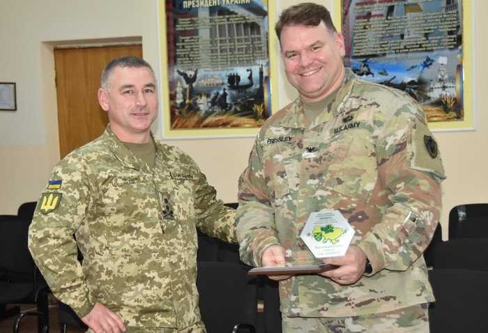 На згадку про плідну зустріч генерал Ніколюк та полковник Преслі обмінялися сувенірами.