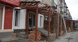 Несколько лет назад дирекция ресторана «Мама мия» соорудила пристройку к ресторану, ощутимо выпирающую на тротуар. Выглядело это странновато, но ресторан благодаря этому занял удачное стратегическое положение — его невозможно было не заметить. Но если это дозволено «Мама мии», то почему нельзя другим? Видимо, эта мысль не давала покоя владельцам прилегающих к ресторану магазинчиков, и сейчас мы наблюдаем последствия подготовительной деятельности к этой перестройке, которая, как оказывается, вполне законна и согласована с ответственными органами.