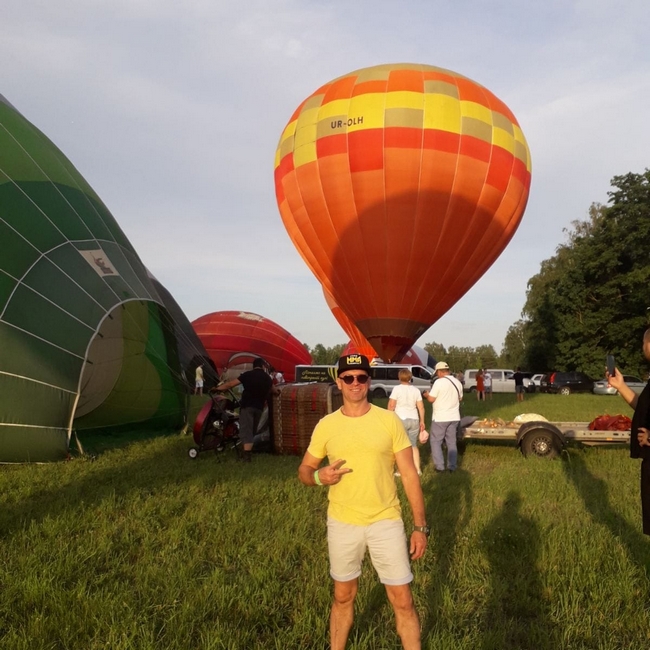 Рік тому повітряна куля з’явилася в моєму житті зовсім випадково. Коли їздив у Буковель, київською трасою, завжди бачив, як літають ці кулі. У 2020 році думав, що подарувати товаришу на день народження. В інтернеті знайшов, як варіант, політ на повітряній кулі. Коштував він три чи три з половиною тисячі^гривень. І сам вирішив долучитися. Це в селі Колонщина на Київщині. Якраз був фестиваль повітряних куль. Поплавали на них.