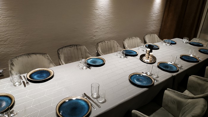 Для 50-ти мест помещение маловато - столы стоят очень близко друг к другу: слышно все, о чем говорят соседи. На вешалках много одежды, а в случае, если на пальто маленькая петелька, его невозможно повесить вообще – нет плечиков.