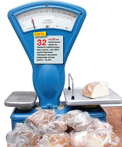 32 из 39-ти купленных нами половинок хлеба оказались легче, чем 50% целой буханки.