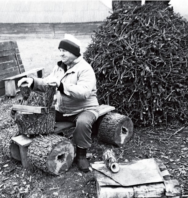 Віктор Тимофійович (на знімку) підійшов до цієї справи креативно, навіть з гумором. Подивіться: чого тільки варта його саморобна композиція з розпиляних стовбурів сухостоїв і обрубаного гілля! Як у тій казці вийшло: яскраво, самобутньо, прикольно! Оцінив дідусеві старання навіть маленький внучок, котрий разом з бабусею залюбки працював, використовуючи і імпровізований транспорт, і привезені додому дрівцята.